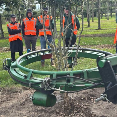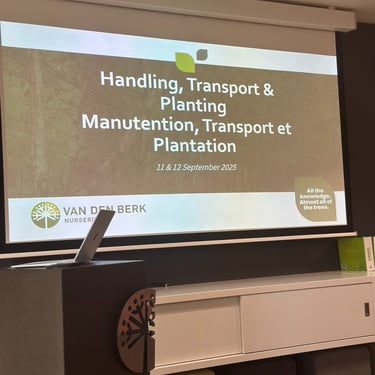 2025 m. rugsėjį dalyvavome mokymuose Olandijos Van den Berk medelyne, kur mokėmės didelių medžių persodinimo su šaknų gumulu technologijų.