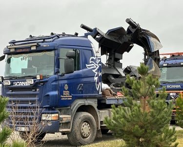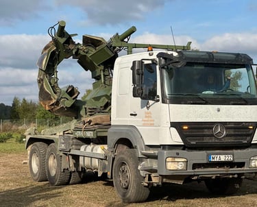 Vienos operacijos metu hidrauliniais kastuvais iškasame medį kartu su vientisu šaknų gniužulu ir grunto sluoksniu.